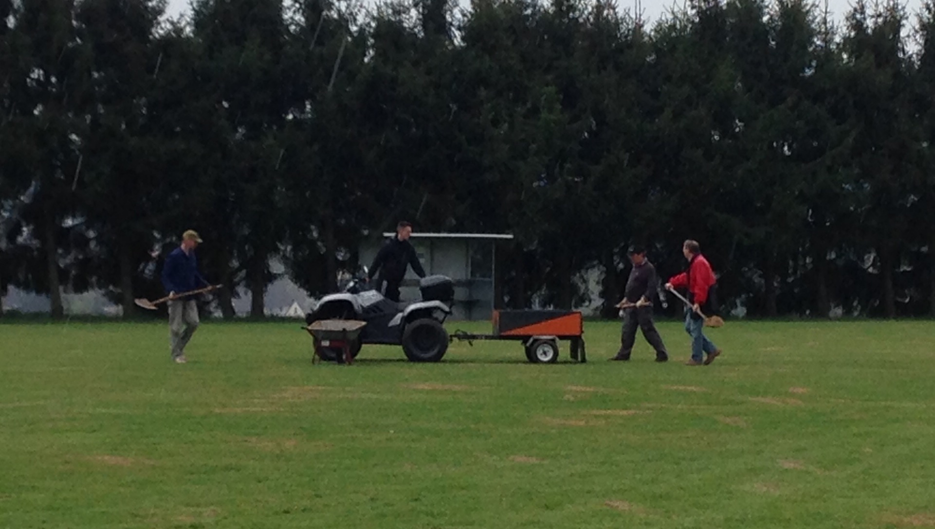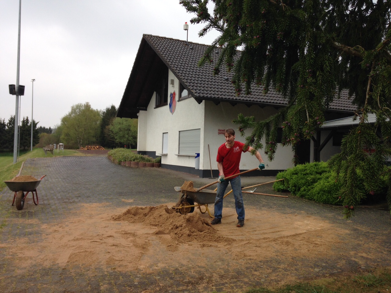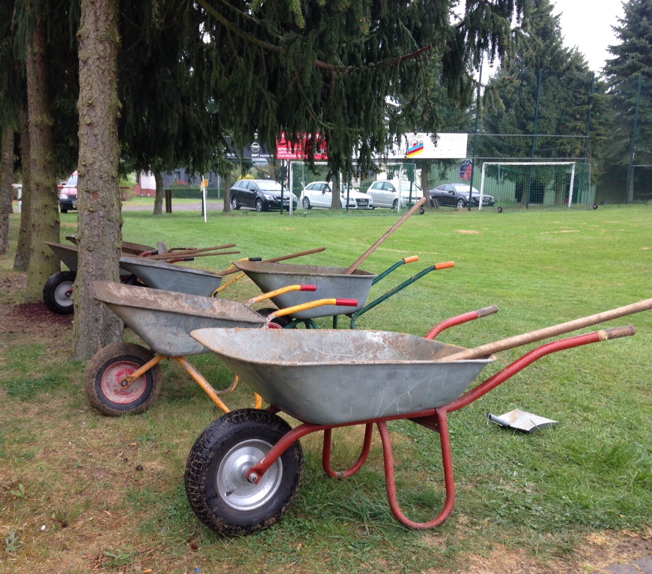 Bis an das „Ende der Leistungsfähigkeit“ (s. Bild 3) haben zahlreiche Helfer unseren Rasenplatz bearbeitet. Fuhrpark und Werkzeug waren fachmännisch auf die Arbeit abgestimmt. Leider spielte das Wetter nicht ganz mit.