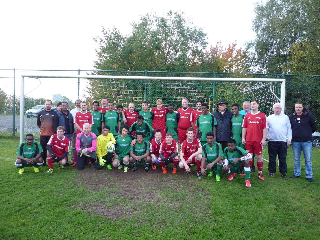 Zahlreiche Tore gab es zu sehen bei dem Spiel der Flüchtlingsmannschaft des FSV Merkelbach und der Mannschaft der SG Bruchertseifen II. Das Ergebnis von 13:4 für die Gäste war letztendlich unwichtig, der Spaß überwog auf beiden Seiten. Die Mannschaft der Asylanten und Flüchtlinge, die sich überwiegend aus Männern aus Eritrea und Afghanistan zusammensetzte zeigten vor allem in der 1. Halbzeit ein erstaunliches Spiel mit flotten Kombinationen und konnten TW Klaus Benner 3 x bezwingen. In der 2. Halbzeit lies allerdings die Kraft nach uns so wurde aus dem 3:3 Halbzeitstand noch eine 4:13 Niederlage. Klaus Benner spielte in der 2. Halbzeit im Feld und bewies mit 4Treffern Torjägerqualitäten.