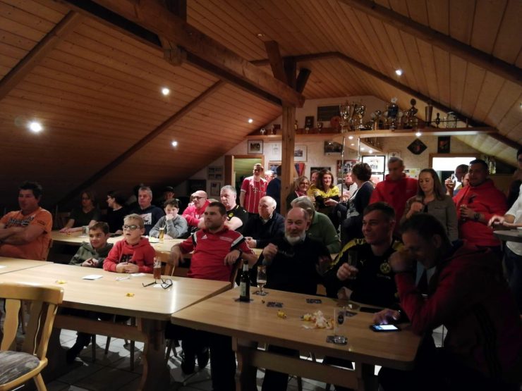 Tolle Stimmung im Sportheim Bruchertseifen beim Sieg des BVB gegen den FC Bayern.