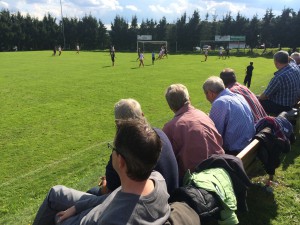 In diesem ersten Relegationsspiel gingen beide Mannschaften energisch und mit vollem Einsatz ins Spiel. Nach nicht mal drei Minuten konnte Kevin Wagner eine Flanke von Valentin Bondarenko zum 1:0 einköpfen. Danach entwickelte sich das Spiel zu einem offenen Schlagabtausch mit Chancen auf beiden Seiten. In der zweiten Hälfte der ersten Halbzeit übernahm der Gast das Zepter und kam zu einigen guten Chancen.
