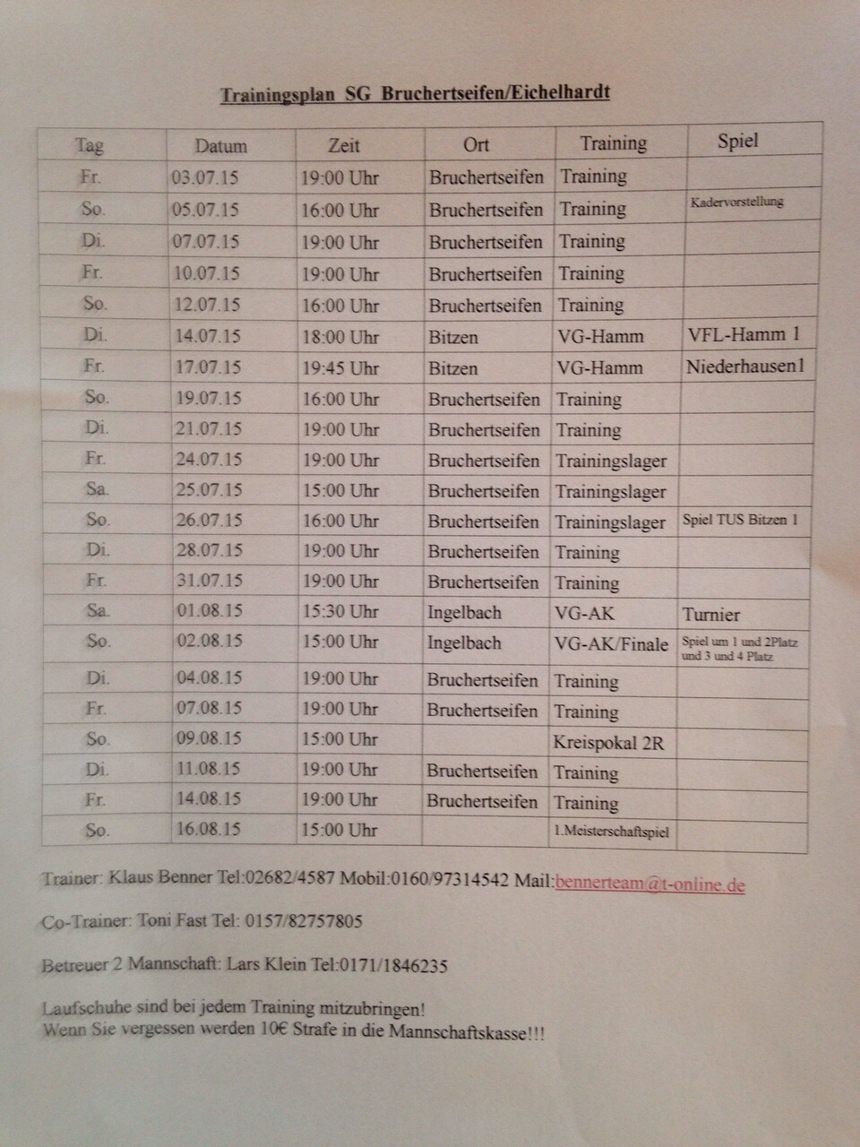 Trainingsplan 1. Mannschaft